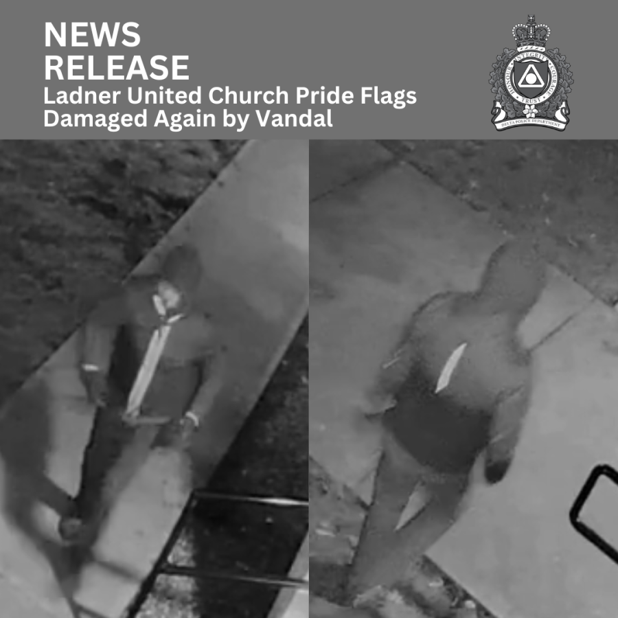 Over the past year, the Delta Police Department has investigated several mischiefs that have targeted the Ladner United Church, and more specifically, Pride flags that are displayed in the church's windows. On November 27th, 2023, the DPD received another report of mischief that occurred overnight where a lone suspect approached a window where a Pride flag was displayed, and using a glass-breaking tool shattered the window before running away.